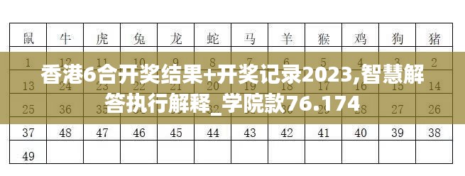 香港6合彩作为一项深受欢迎的彩票游戏,不仅在香港本地,甚至在国际上都拥有庞大的粉丝群体。它以其独特的开奖方式和高奖金吸引了无数彩民的目光。2023年,香港6合彩的开奖结果和记录再次成为人们关注的焦点,而“智慧解答执行解释_学院款76.174”这一关键词,更是在彩民中引起了广泛的讨论。