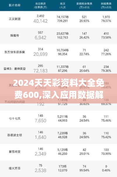 在现代社会,数据已经成为一种重要的资源,无论是商业决策还是个人生活,数据的应用无处不在。2024年,随着技术的进步和大数据的普及,人们对于数据的需求和依赖日益增加。本文将深入探讨2024年天天彩资料大全免费600,即一个提供丰富数据资源的平台,如何通过深入应用数据解析来满足用户的需求。