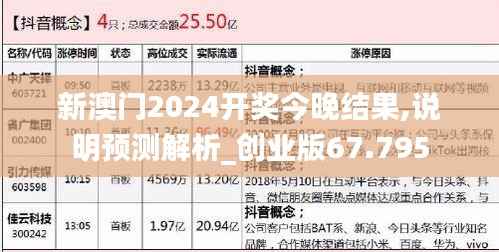 新澳门2024开奖今晚结果:深入解析与预测创业版67.795