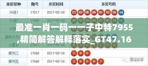在这个信息爆炸的时代,人们对于预测和决策的需求日益增长。无论是在投资、工作还是日常生活中,我们都需要一种能够提供精准指导的工具。"最准一肖一码一一子中特7955,精简解答解释落实_GT47.16"正是在这样的背景下应运而生,它以其独特的预测能力和精简的解答方式,迅速在年轻人中流行开来。本文将带你深入了解这一神秘而强大的预测工具,探索其背后的科学原理和实际应用。