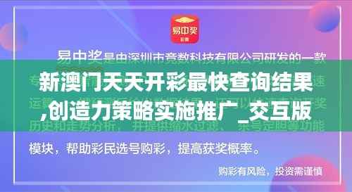 新澳门天天开彩查询结果的快速公布和交互版19.362系统的推广,不仅提高了彩票查询的效率,也为彩票市场带来了新的活力。通过不断的创新和优化,新澳门彩票机构致力于为用户提供更好的服务和体验。