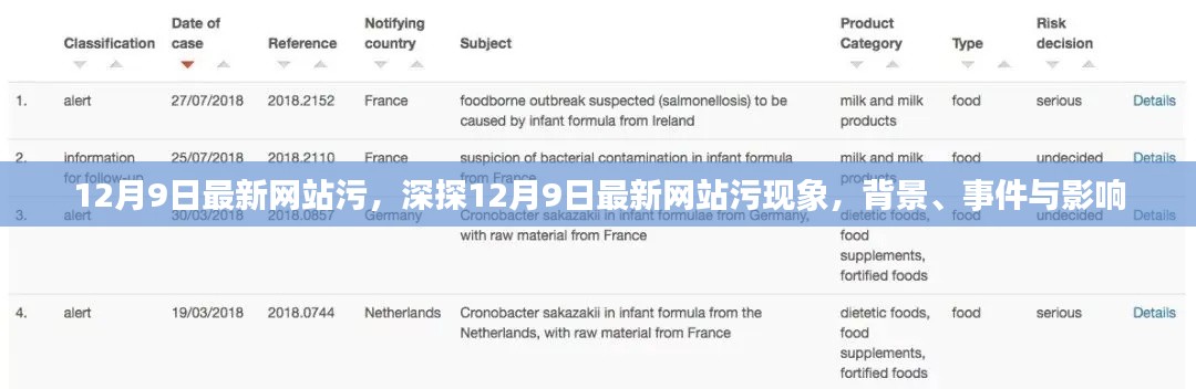 在数字时代的浪潮中,网络文化日新月异,而关于“网站污”的话题也时常成为公众关注的焦点,本文旨在探讨12月9日发生的最新网站污现象,从背景、重要事件、影响及其在现代社会特定领域或时代中的地位等角度进行深入剖析,以客观叙述的笔触,辅以一定的文学色彩,展现这一现象的复杂性和多面性。