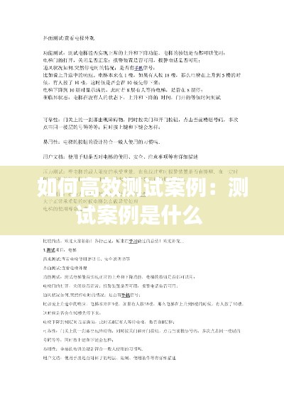 测试用例是测试案例的具体实现,它描述了如何执行测试以及预期的结果。以下是设计高效测试用例的几个步骤:
