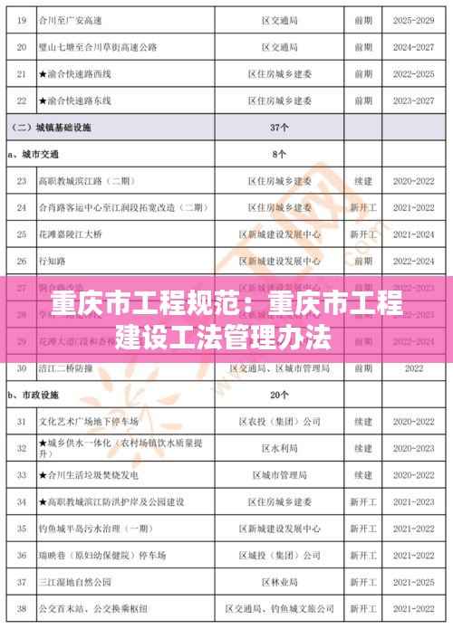 重庆市工程规范的实施是一个动态过程,需要不断更新和完善。具体措施包括: