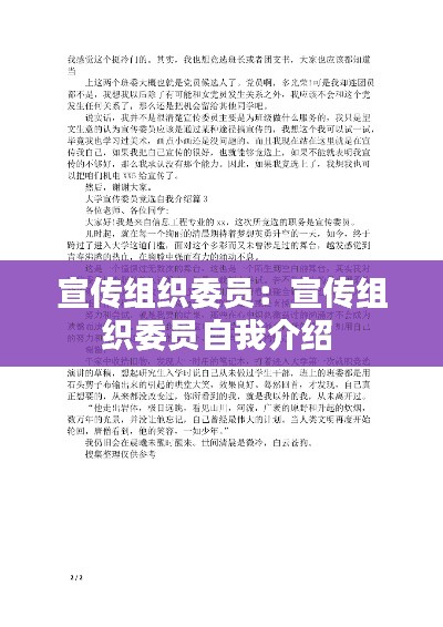 宣传组织委员是组织工作中不可或缺的一员,他们的工作对于组织的发展具有重要意义。作为一名宣传组织委员,应不断提升自身素质,努力做好本职工作,为组织的发展贡献自己的力量。