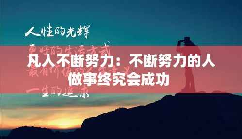 总之,凡人不断努力,是实现个人梦想、推动社会进步、传承人类文明的重要途径。在努力的道路上,我们可能会遇到困难,但只要我们保持坚定的信念,勇敢地面对挑战,就一定能够收获成功。让我们以努力为帆,以梦想为舟,驶向更加美好的未来。