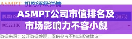 在全球科技产业的浪潮中,ASMPT公司作为行业的重要一员,其市值排名及市场影响力备受关注,本文将围绕ASMPT公司的市值排名展开,探讨其在业界的地位、市值变化的原因以及未来的发展前景。