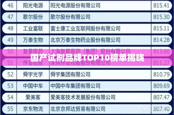 是国产试剂品牌排名前十名,这些品牌以其在技术、质量、服务等方面的优势脱颖而出,在市场上享有较高的声誉和影响力,市场上还有许多其他优秀的国产试剂品牌,这里只是列举其中一部分,在选择试剂产品时,建议用户根据自身需求和预算进行选择,同时关注产品的品质、性能、价格等因素。