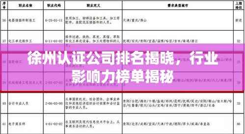 随着社会的快速发展,认证行业逐渐崭露头角,成为保障企业信誉和产品质量的重要一环,徐州作为江苏省的重要城市,其认证公司亦呈现出蓬勃的发展态势,本文将探讨徐州认证公司的排名及其行业影响力。