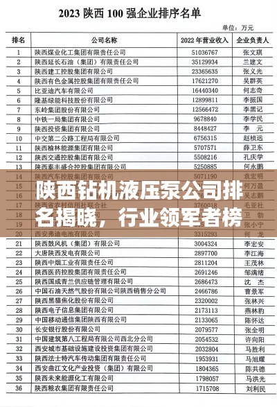 随着工业领域的不断发展,钻机液压泵作为关键设备之一,其市场需求不断增长,在陕西这一工业大省,众多钻机液压泵公司纷纷涌现,为行业发展贡献力量,本文将介绍陕西钻机液压泵公司的排名,以便为采购商和业内人士提供参考。