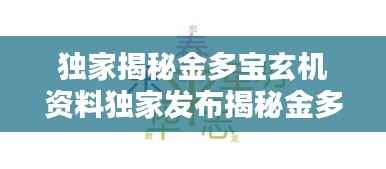 随着现代社会的发展,人们对于财富的追求愈发强烈,而金多宝作为一个深受人们喜爱的投资领域,其相关的资料与资讯备受关注,本文将围绕“金多宝玄机资料独家发布”这一主题展开,为广大投资者揭示金多宝背后的奥秘。
