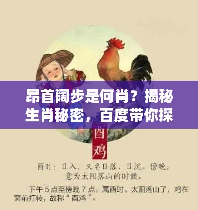 在日常的生活中,我们常常会遇到一些充满疑问的成语或短语,它们背后往往隐藏着丰富的文化内涵和故事,我们就来探讨一下这个充满活力和动感的短语——“昂首阔步”,当我们在百度上搜索“百度一下昂首阔步是何肖”时,会发现这个短语竟然与中国的生肖文化产生了奇妙的联系。“昂首阔步”究竟是何肖呢?让我们一起来揭开这个谜底。