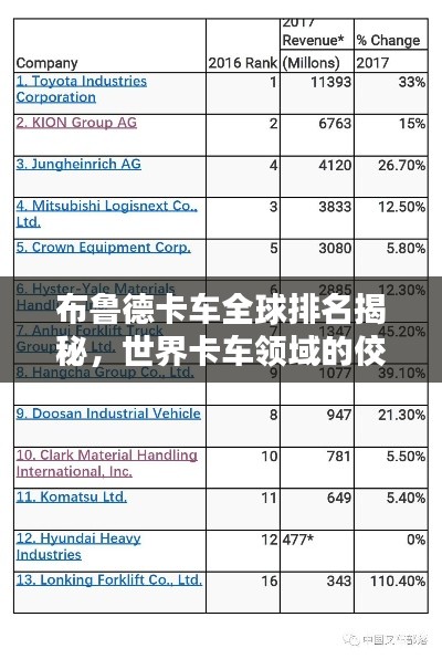 在全球卡车行业中,布鲁德卡车凭借其卓越的性能、出色的可靠性和高效的经济性赢得了广大用户的信赖和赞誉,本文将从多个角度深入探讨布鲁德卡车在世界卡车领域的排名及其相关因素。