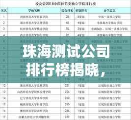 珠海,作为中国的经济特区之一,近年来在科技、电子、信息技术等领域取得了显著的发展成果,随着产业的蓬勃发展,测试行业在珠海也日渐兴起,本文将为您介绍珠海测试公司的排名,带您了解这些企业的优势与特点。
